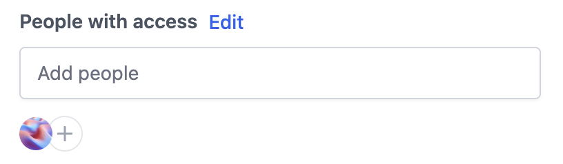 The "Add people" input suggests that clicking on it should let us type and search for users to add. Instead, it navigates to a second screen (see image below). This closely resembles a standard input field prevalent across the web, so it should behave like one. This false affordance goes against Jakob's Law2, 3 and introduces unnecessary cognitive load.